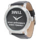 Bought last minute for hubbys 65th birthday. Arrived in NZ by express on the day. Loves it and so does everyone he’s shown it to. Lovely watch and strap and words small but clear. Thank you 😍. Great. Small but clear.