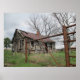 Ravaged by time and weather a small home is just a whisper of itself. The old farmhouse stands alone with its falling clapboard siding and rusting tin roof. Country setting in the beginnings of spring with the vibrant green grass and barren trees before they awaken with leaves. Surrounded by a barbwire and steel fence. It is an overcast day repeating the greys the building now wears.