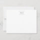 This notecard features a minimalist design with a plain white background. At the top centre, the design includes a small, elegant text element comprising initials and a date, framed by two thin horizontal lines above and below. The overall layout is simple and refined, emphasizing clean lines and balanced spacing, which lends a modern and understated sophistication to the card.