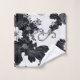 A stunning, high-contrast black and white floral pattern with intricate swirling botanical elements.