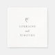 Modern wedding napkins featuring a simple design with a heart above your names in elegant script and serif fonts.