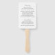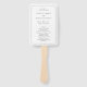 Elegant wedding program hand fan featuring a simple design with your event details in serif and script fonts inside of a border.