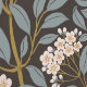 Nature inspired, leafy blossoming pattern with trailing stems with vintage feel creating a sense of movement and elegance. The pattern is balanced and harmonious, enhancing its decorative appeal. The intricate details in the leaves and flowers contribute to an ornate and delicate look. The use of floral and leafy motifs reflects an organic, nature-inspired theme.