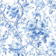 Timeless Blue French Toile Roses Floral Wallpaper