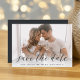 Announce your wedding date in unforgettable style with these elegant photo save the date cards, featuring a full bleed horizontal or landscape orientated photo with "save the date" overlaid in black calligraphy lettering along the bottom. Your names, wedding date, and wedding location appear beneath in modern lettering. Personalise the back with additional details, such as your wedding website.