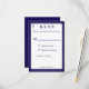 Design front features the traditional format for a wedding response card displayed in a navy-blue font against a white background. The image of a cross is displayed at top corner. Entire design is framed by an elegant navy and white border.