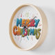 Celebrate the holiday season with our enchanting "Merry Christmas Clock," a delightful fusion of functionality and festive cheer. This clock features a whimsical design adorned with classic Christmas motifs, including cheerful snowflakes, sparkling ornaments, and a radiant Christmas star at the centre. The vibrant colours of red, green, and gold evoke the warmth of holiday festivities, while the elegant hour and minute hands glide gracefully across the clock face, bringing a touch of magic to any room.