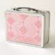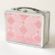 This is a standard metal lunchbox that appears to work just fine. We designed this box ourselves with an uploaded photo and custom text on the front and back. It looks absolutely beautiful except the front of the lunchbox is not centered like it shows in the photo. The print borders don't align with the inset flat part of the box where the preview photo online showed it perfectly centered in there. The back looks nice and centered though.