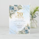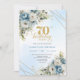 Timeless dusty blue florals gold frame 70 birthday invitation