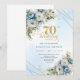 Celebrate a milestone in style with this elegant 70th birthday invitation featuring watercolor dusty blue and white flowers, soft eucalyptus greenery, and a shimmering gold frame. Designed in chic boho style with refined script lettering, this floral invitation is perfect for a classy 70th birthday party. Ideal for formal, garden, or luxury celebrations with a timeless, sophisticated touch.