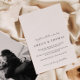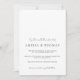 The wedding invitation showcases a minimalist and elegant design with a clean, white background and centred text. It combines a formal serif font for the main details with a delicate handwritten script for accents, creating a modern yet sophisticated look. The layout is simple and spacious, emphasizing clarity and understated beauty.