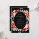 This wedding invitation features a sophisticated design with a black oval centerpiece framed by vibrant red and pink roses. Elegant white script details the couple's names, "Sierra Brown and Brandon Adams," along with the event date, time, and venue: "The St. Regis Atlanta." The classic floral aesthetic paired with the dark background creates a timeless and romantic feel.