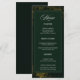 Elevate your wedding reception with this timeless and elegant custom menu. Featuring a rich dark green background with subtle gold floral damask patterns, and clear, classic typography, this menu card beautifully presents your chosen dishes for starter, main course, and dessert. Fully customisable to match your wedding theme and culinary selections, adding a sophisticated touch to your table setting.
