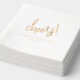 Classic and elegant wedding foil napkin featuring a simple layout with "cheers" in a modern script and your names and wedding date below.