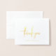 Classic and elegant wedding thank you card featuring a simple layout with "thank you" in a modern script and your names and wedding date below. All text on the front is in real gold foil. The clean and minimalist layout make this wedding thank you card great for a traditional, formal wedding.