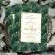 Timeless Emerald Green Gold Leaves Wedding Invite