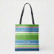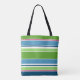 Cool colourful beach essentials, school books or grocery shopping tote with contemporary simple light lime green, aqua blue, bright summer pink and white coloured striped stripes pattern. With room to customise with name, monogram or initials of your choice. Matching beach towel available... https://www.zazzle.com/custom_lime_green_dark_blue_hot_pink_white_stripes_beach_towel-256486653932782613