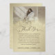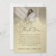 An elegant wedding thank you card featuring a soft gold damask design with refined artistic detail. The front displays a warm “Thank You” header in graceful script, paired with a heartfelt message of gratitude to the Lord and to guests for their presence. The card blends timeless sophistication with personal sentiment, making it a perfect keepsake to honour those who shared in the wedding celebration.