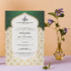 The invitation's front features the intricate interplay of emerald and gold, a combination long associated with prosperity and sacred blessings, while the reverse side maintains a clean, understated soft ivory backdrop. This thoughtful design ensures a polished, luxurious finish that speaks to your impeccable taste.