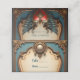 Timeless love, surreal elegance in steampunk style. The design features an ornate steampunk-style frame, captivating with its delicate carvings and gold accents. The frame is richly decorated with intricate patterns and shimmering metallic details reminiscent of Victorian mechanics and artisanal precision. The frame's surface appears slightly aged, underscoring its authentic steampunk charm. A red heart adorned with gold details is visible at the bottom of the design. The heart is flanked by delicate blue wings, lending it a touch of lightness and romance.