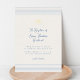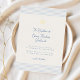 Timeless baptism invitation that combines soft blue stripes on light beige background, a delicate gold foil shell cross symbol, and handscript font. Elegant and modern.