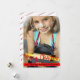 Add your photo and text to this classic style photo Christmas card. The text Merry Christmas in an outlined script font and your name in a red banner near the bottom. Easily upload your photo and adjust if needed using the Customise button to resize and move to create a memorable family Christmas card.