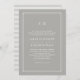 Elegant, simple and formal, our Timeless monogram wedding invitation in neutral Greige grey-beige features a white geometric border framing your wedding details in classic lettering, topped by your initials, monogram or duogram. The text templates in this version are set up with wording for the bride's parents hosting, with the groom's parents listed beneath his name.