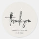 Classic and elegant wedding favour stickers featuring a simple layout with "thank you" in a modern script and your names and wedding date over a neutral beige faux paper texture. The clean and minimalist layout make these favour stickers great for a traditional, formal wedding.