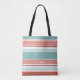 Cool colourful beach essentials, school books or grocery shopping tote with contemporary simple light mauve taupe, dusty rose and blush coral pink coloured striped stripes pattern. With room to customise with name, monogram or initials of your choice. Matching beach towel available... https://www.zazzle.com/custom_teal_coral_red_salmon_orange_white_stripes_beach_towel-256115006163546356