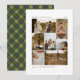 Timeless family photo collage Christmas card with seven photos on the front and space for your personalised message and names. The back features a classic green plaid.