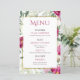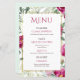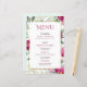 Invite your loved ones to celebrate your special day with this sophisticated wedding menu card, designed to evoke timeless elegance and romance. Featuring an exquisite floral border in shades of deep magenta and ivory, the lush blooms frame a minimalistic and refined central design. The typography blends modern serif and classic fonts, creating a harmonious balance of contemporary and traditional elements. A subtle hint of pink in the ampersand adds a touch of whimsy to the layout, while a thin gold border lends a luxurious finish. Perfect for couples seeking a classy and elegant invitation that embodies both warmth and sophistication.