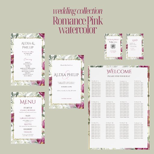 Invite your loved ones to celebrate your special day with this sophisticated wedding RSVP Card, designed to evoke timeless elegance and romance. Featuring an exquisite floral border in shades of deep magenta and ivory, the lush blooms frame a minimalistic and refined central design. The typography blends modern serif and classic fonts, creating a harmonious balance of contemporary and traditional elements. A subtle hint of pink in the ampersand adds a touch of whimsy to the layout, while a thin gold border lends a luxurious finish. Perfect for couples seeking a classy and elegant invitation that embodies both warmth and sophistication.