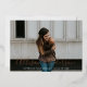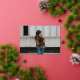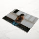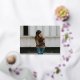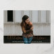 Elegant graduation announcement featuring the graduate's horizontal photo and graduate's name in a real rose gold foil calligraphy script overlay. Personalise the photo graduation announcement by adding the school name and graduation year. The announcement reverses to display a white trellis pattern and black background or colour of your choice.