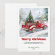 Bring the heartwarming magic of the holidays to every mailbox with this charming Christmas greeting card featuring a watercolor red truck Christmas scene in a cozy rustic style. Inspired by classic holiday nostalgia, this design blends soft watercolor textures, a vintage red truck, festive greenery, and a serene seasonal backdrop to create a warm and welcoming atmosphere. The classic red and green color palette paired with bold playful lettering adds a cheerful touch that feels both timeless and modern.