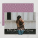 Elegant graduation announcement featuring the graduate's horizontal photo and graduate's name in a white calligraphy script overlay. Personalize the photo graduation announcement by adding the school name and graduation year. The announcement reverses to display a white trellis pattern and purple background.