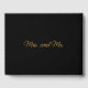 This personalised guestbook beautiful, simple minimalist and elegant. The design features the newlyweds names, wedding date in gold typography in the front, Mrs and Mr in the back, also in gold typography. All customisable, including the elegant and sophisticated and black background.