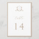 Elegant Botanical Crest wedding monogram, table number card. Vintage inspired crest adorned with botanical branches. Features, elegant beige typography design style mix of script and bold type. Please note that table number cards must be ordered individually.