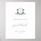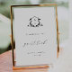 Elegant botanical adorned vintage style wedding monogram crest in black and white, wedding guest book poster.