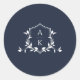 Timeless Vines Monogram Crest Navy Classic Round Sticker