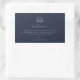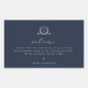 Elegant botanical greenery adorned crest, wedding monogram, navy blue welcome bag sticker.