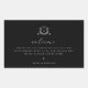 Elegant botanical greenery adorned crest, wedding monogram, black welcome bag sticker.