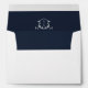 Timeless Vines, 5x7 wedding invitation envelope. Envelope is lined in navy blue with white crest monogram detail. Features, return address on back flap in matching navy blue colour.