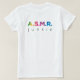 ASMR Junkie white t-shirt for those who love the tingling sensation in their brain induced by certain sounds or touches. A colourful text with ther colours of the rainbow on a white t-shirt.