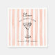 Serve up style with these personalised birthday party napkins featuring a trendy hand-drawn martini glass on a peach watercolor cabana stripe background. Perfect for a “Tini Bit Older” birthday party, they can be customised with any text, colours, and fonts to match your celebration. Ideal for milestone birthdays or any age, these napkins add a chic and festive touch to cocktails, appetizers, or cake.