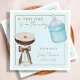 A Tini One is On The Way Blue Espresso Martini and Baby Bottle Boy Baby Shower Napkins - A unique and adorable baby shower napkins with an espresso martini adorned with a mocha brown coquette bow and a vintage boy baby bottle, both watercolor illustrations. Elegant, handwritten script font alongside sleek block font in brown tone. Customise these personalised baby shower napkins template with your own event details.