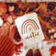 This ceramic mug features a bohemian burnt orange terracotta rainbow with a sun inside and the word 'auntie' written in a handwritten brush font. This coffee cup is the perfect way to announce a new baby in the family and makes a great gift to your favorite aunt. 💜 COLORS ARE EDITABLE! Click 'edit design' to change the colors.