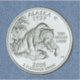 Show your love for all thing Alaska with this tinted version of the U.S. Mint's Alaska State 2008 quarter design image (uncirculated reverse), featuring a bear with fish and the state motto. Blue denim texture background
