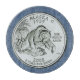 Show your love for all thing Alaska with this tinted version of the U.S. Mint's Alaska State 2008 quarter design image (uncirculated reverse), featuring a bear with fish and the state motto. Blue denim texture background