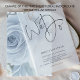 Tinted Dusty Blue Florals Background for Vellum. Beautiful pale blue and white florals for a beautiful background for a vellum invitation. There is an opacity layer on top of the flowers so the text on the vellum invitation will stand out when placed on top of the card with your photo. You can delete this opacity layer if preferred. Choices for the vellum invitations to place on top of the card with this floral illustration are available to buy separately in this collection. Replace the sample photo on the back with your own favourite. Add your QR code to your wedding website on the back makes this a convenient option for your guests to RSVP and see all the details without the need for separate RSVP and details cards. Your QR code will be automatically generated to update the sample code in the design, when you simply change the sample URL in the template with your own wedding website URL.