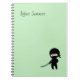Cute but angry cartoon ninja dressed in black is holding a traditional Japanese katana sword.